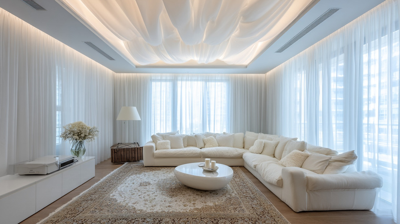 В домашнем интерьере сатиновые потолки особенно ценны благодаря своей способности создавать уютную атмосферу: